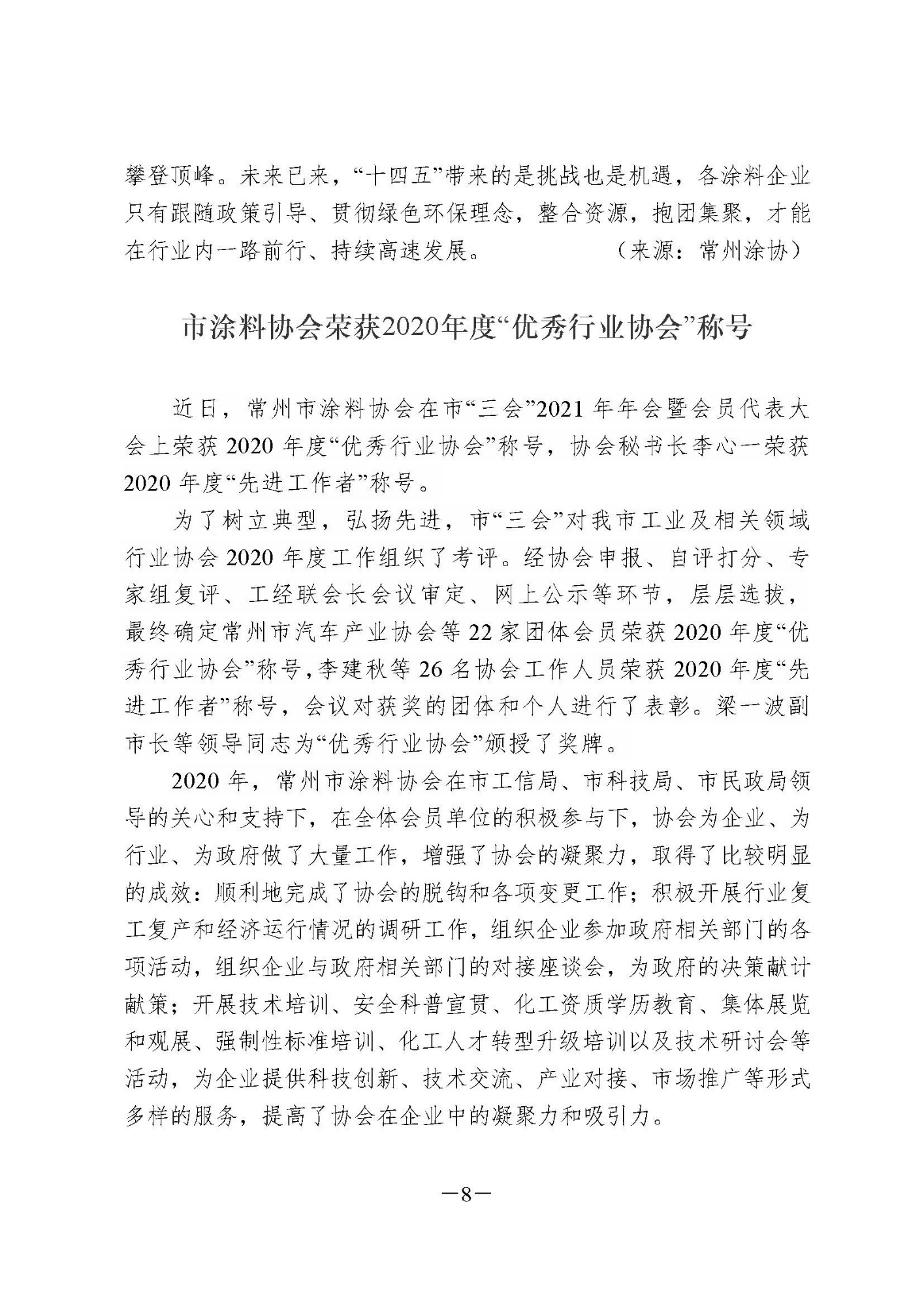 : 常州涂料簡(jiǎn)報(bào)2021年第1期(總第85期)
